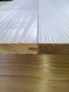 本実(ほんざね)加工(突き付け) 未分類 Twitter Facebook はてブ Pocket LINE コピー 2020.12.01 近くの建材屋さんが加工に持ってきました。最近では珍しい加工です。 表と裏の両方見える本実(ほんざね)加工です。 本実加工(突き付け) 本実(フローリング)と違い裏じゃくり(反り止め)も無く、木は伸縮するので木裏の隙間も作るのですが、両面見えるため隙間を作りません。なるべく裏表、どちらで合わせてもぴったり合うように製作しました。