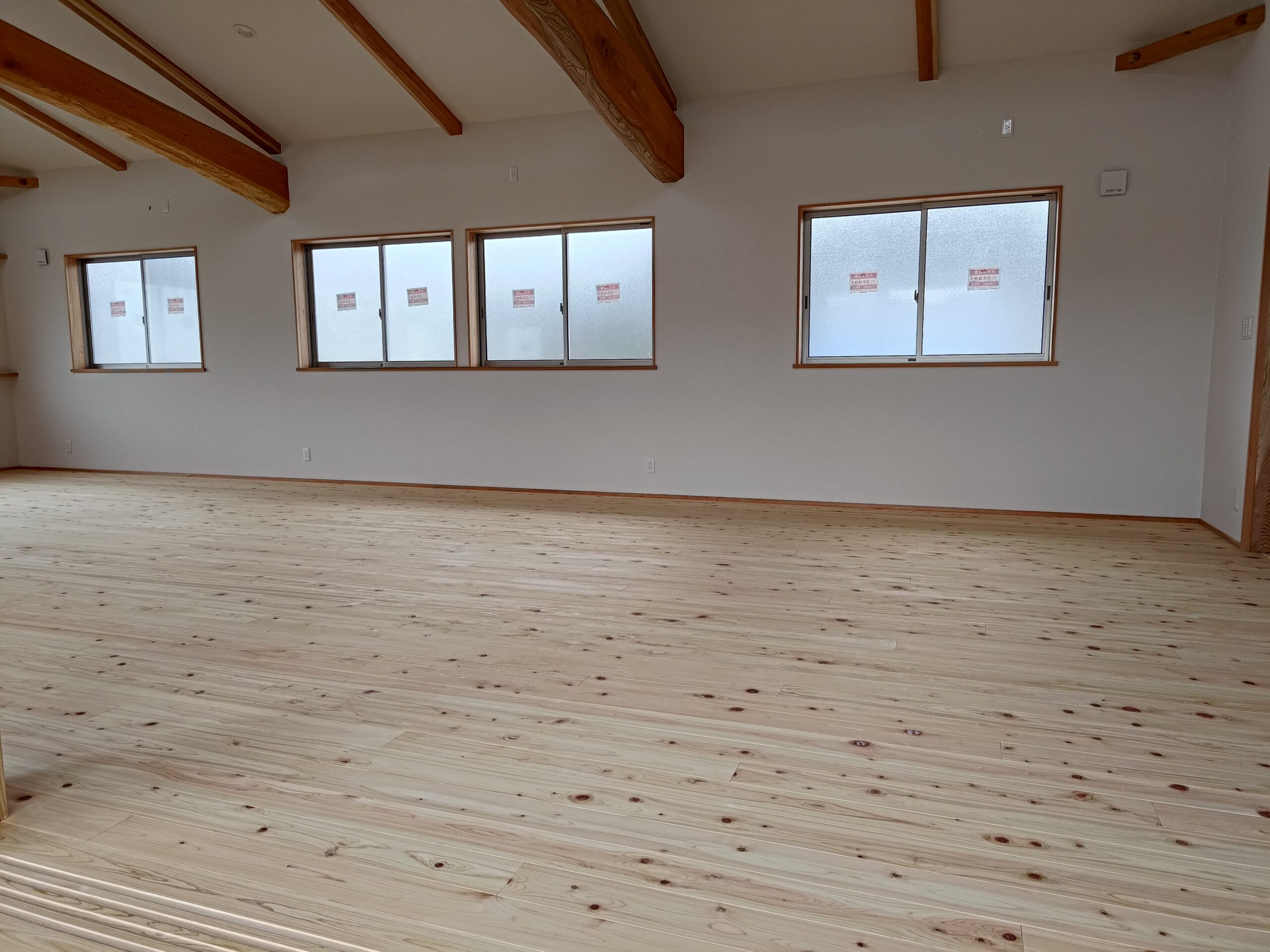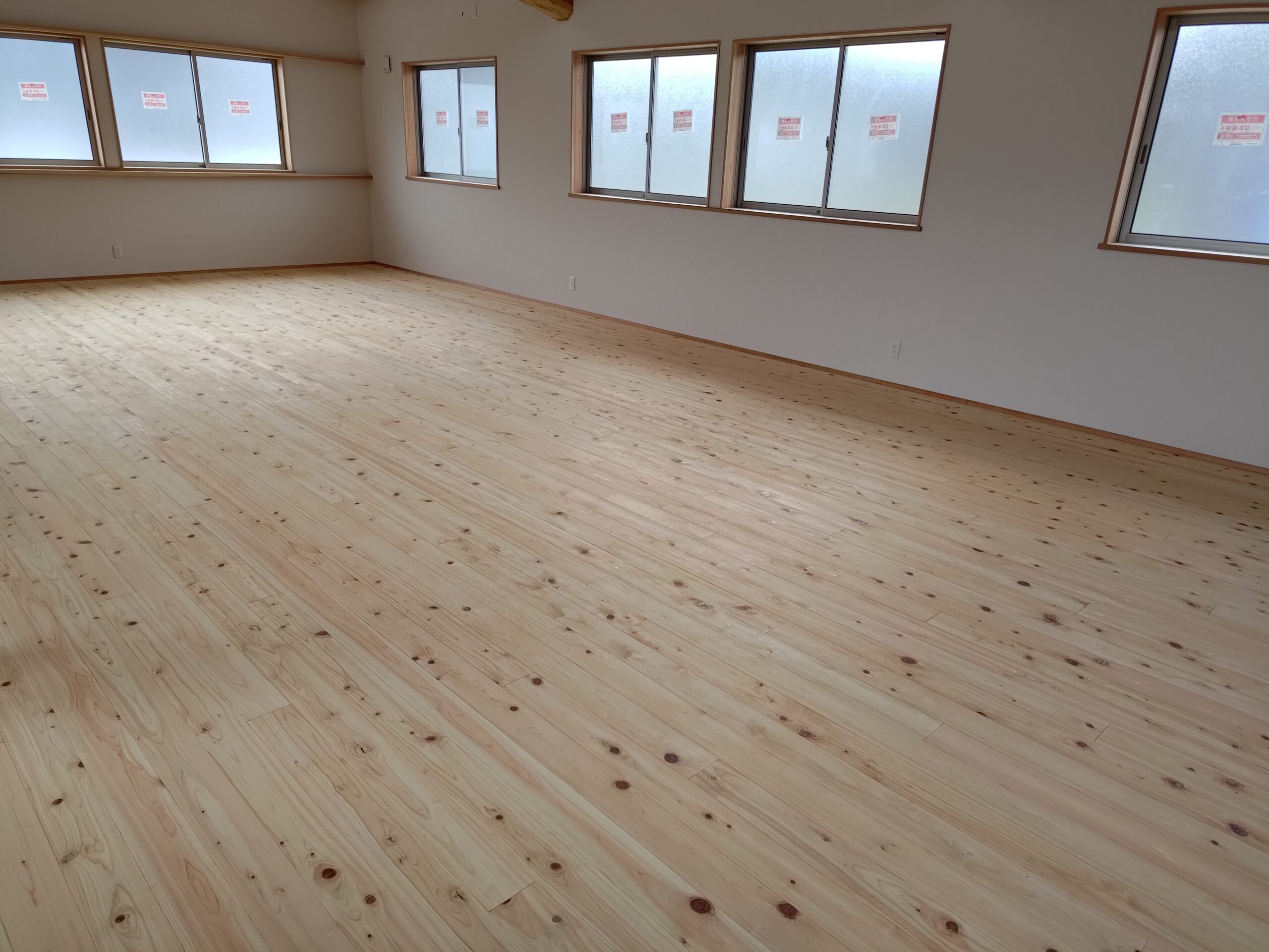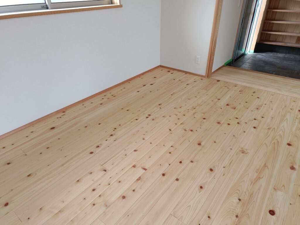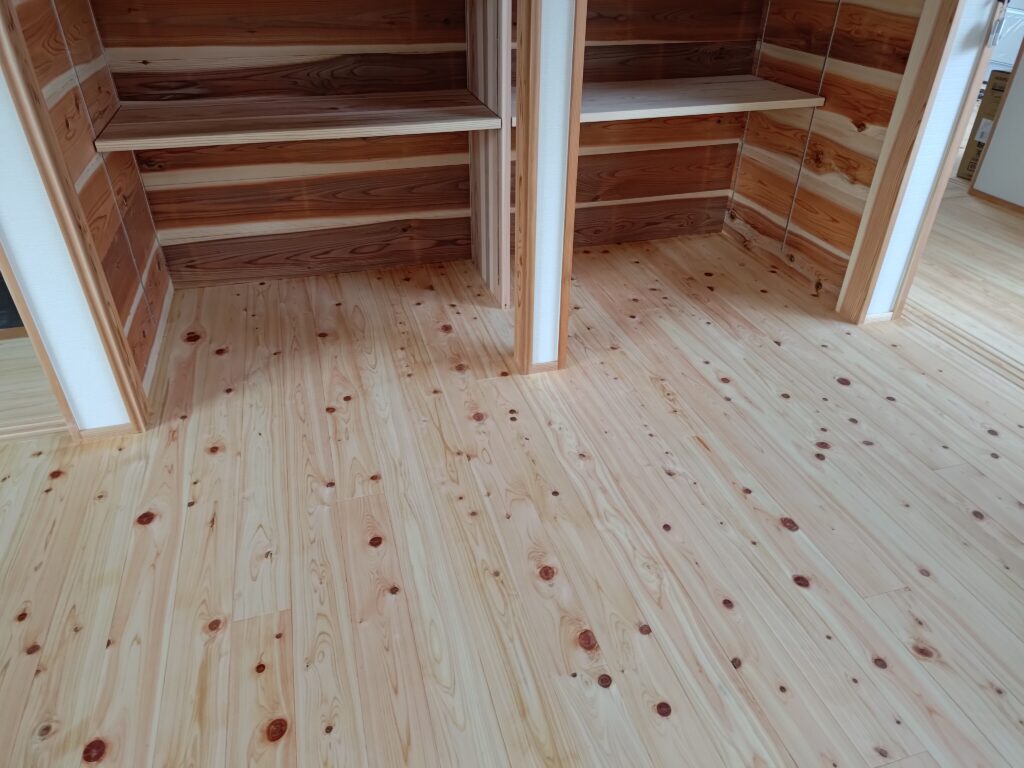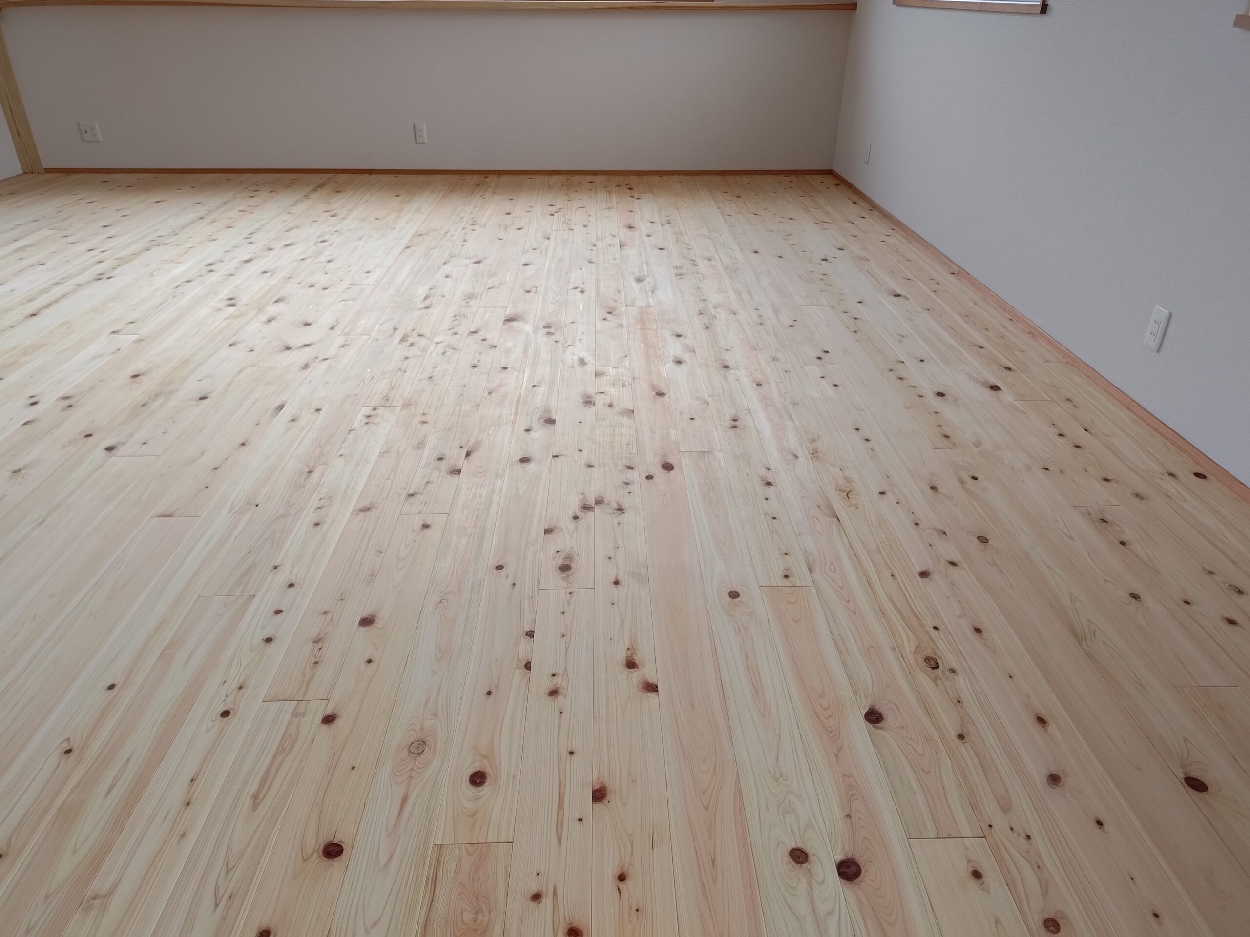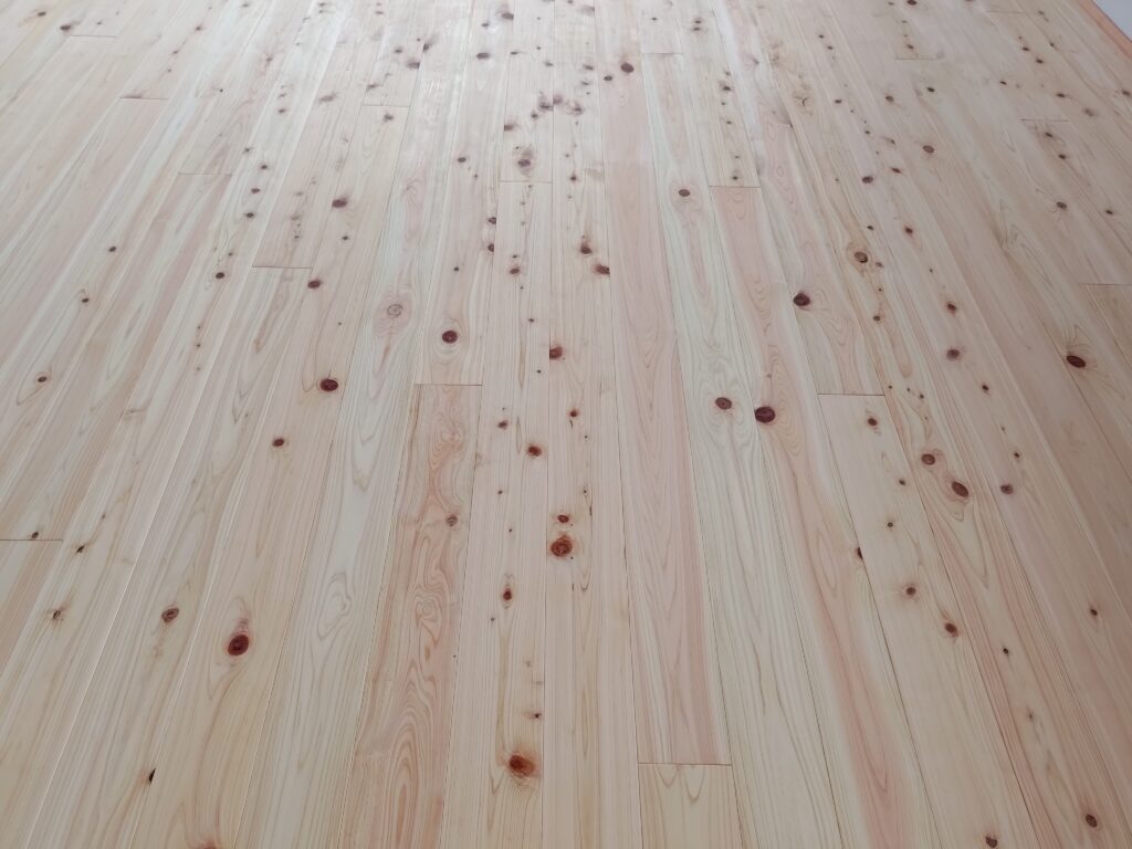 桧フローリング(節有) フローリング Twitter Facebook はてブ Pocket LINE コピー 2024.01.25 自社で加工した、桧 節有フローリングです。完成間近に撮影しました。自然塗料(いろは)のクリアで仕上げ、桧の自然な色合いで仕上がってます。