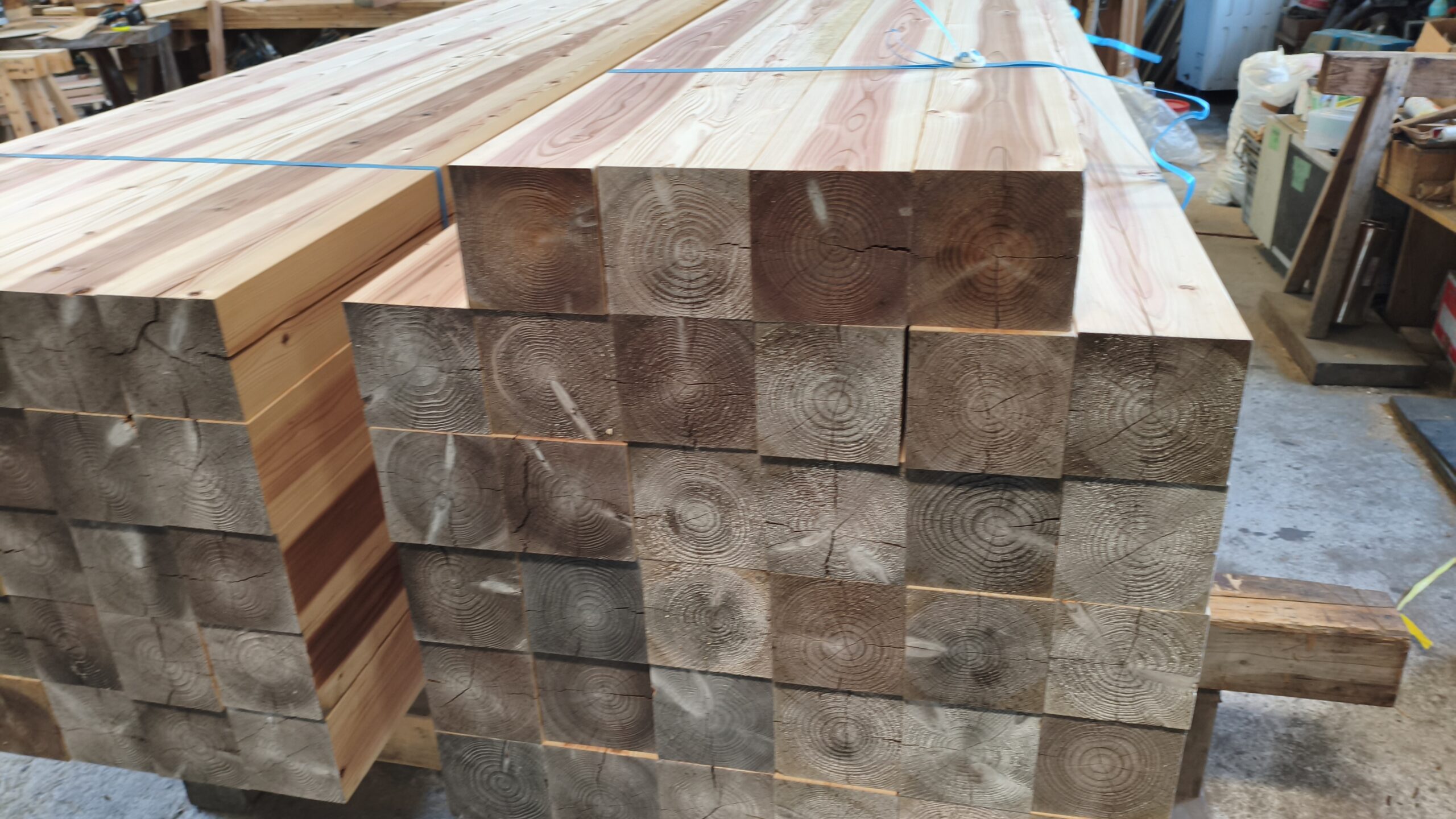 柱 加工 未分類 Twitter Facebook はてブ Pocket LINE コピー 2025.07.01 柱の4寸角(121㎜角)の加工。 製材後は真っ直ぐですが、生木のまま建築に使用すると乾燥とともに痩せたり曲曲がったりしていくので後々大変な事になります。 なので当社は半年以上自然乾燥させてから曲がった柱を真っ直ぐに加工していきます。