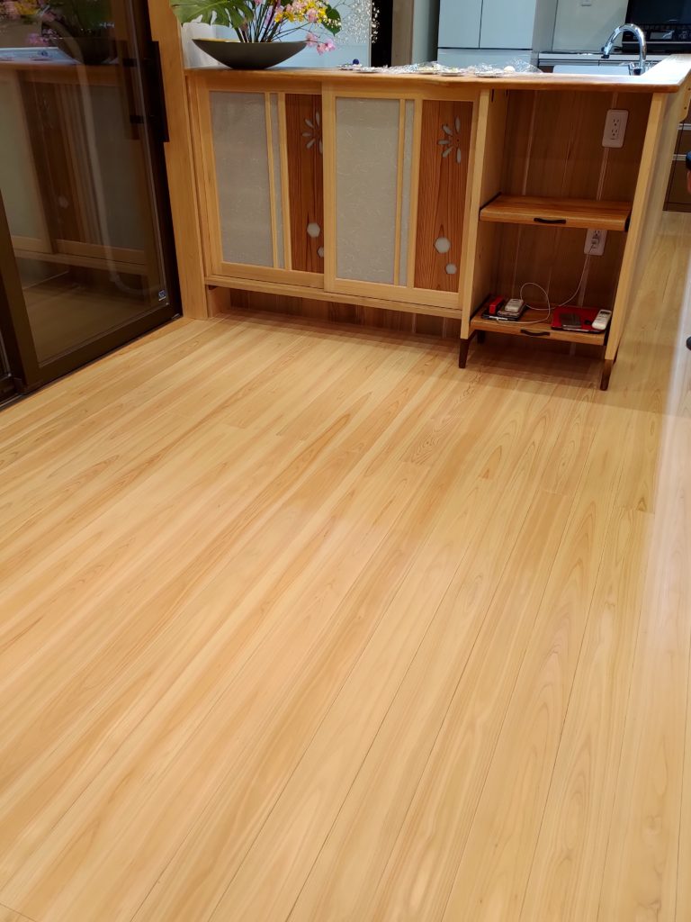 桧フローリング販売 Twitter Facebook はてブ Pocket LINE コピー 2025.01.21 2020.05.01 厚み15~18㎜・働き108㎜・幅は113㎜程です。 厚みや幅は小さくするならお好みの寸法で加工可能です。 フローリングは全て乾燥済で、床暖房にも対応しています。 桧フローリング(節あり 埋木・パテ埋め)超仕上げ有 金額(税込み) 1920㎜ 16枚 16,500円 エンドマッチ有 16枚 19,500円 塗装/送料別 桧フローリング(無地)超仕上げ有 長さ 金額(税込み) 1920㎜ 16枚 19,800円 塗装/送料別